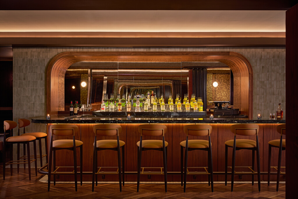 An unassuming door becomes a portal, transporting guests to the mythic world of Sicily and her seas. The Lounge and private dining room unfold like a pearl within its shell. Mysterious, luminous, and quietly captivating. Deep oceanic hues, rich textures, and layered detailing evoke the folkloric realm, balancing shadow and light to create spaces suited for both intimate evenings and celebratory gatherings.